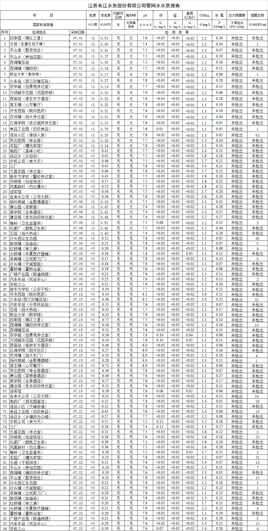 江蘇長江水務股份有限公司管網(wǎng)水水質報告(2019年7月)