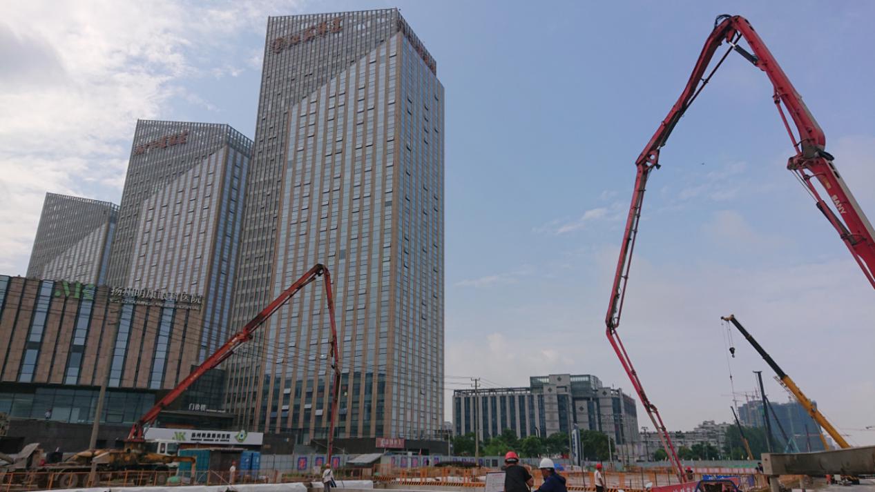 15時30分,第一輛混凝土車在文昌路南側敞開段施工現(xiàn)場外等候;15時40分,混凝土坍落度實驗開始;15時43分,隨著一聲響亮的信號,兩輛泵車輸送管同時就位,文昌路隧道首段底板正式澆筑……