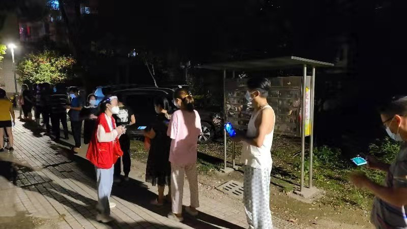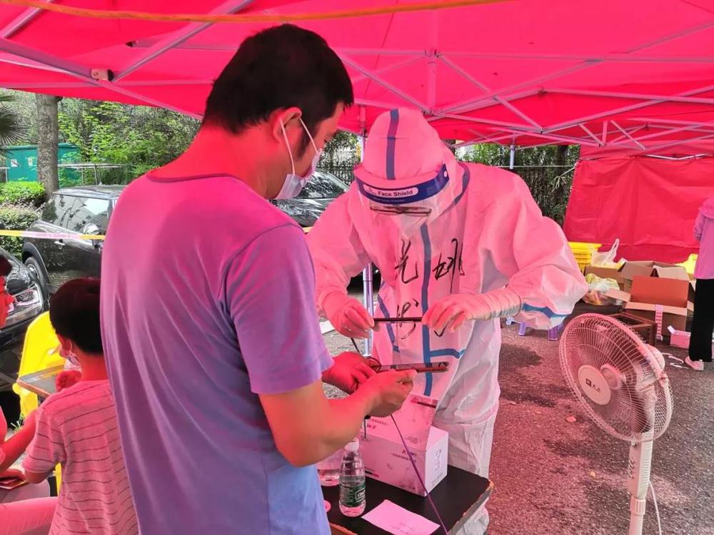 文昌花園、鴻泰家園、文康苑三個小區(qū)共計143棟,居住市民達(dá)10000余人。面對小區(qū)人員構(gòu)成復(fù)雜、核酸檢測易造成混亂等問題,志愿者們克服困難,采取有效措施,保障核酸檢測工作有序進(jìn)行。一是因地制宜,揚州中燃公司和城建置業(yè)公司的黨員志愿者組建黨員先鋒隊,排定各樓棟檢測時間節(jié)點,并以樓棟為單位制作了樓棟牌,每次由1名志愿者帶領(lǐng)各樓棟居民下樓列隊,集中前往核酸檢測點,逐個檢查蘇康碼、測量體溫并按戶進(jìn)行登記,保障了核酸檢測現(xiàn)場有條不紊;二是因事制宜,8月14日,由于小區(qū)“轉(zhuǎn)黃碼”居民急劇增多,志愿者們早晨5點鐘就到達(dá)核酸檢測點,進(jìn)行場地布置、更換擋棚、區(qū)域消毒等準(zhǔn)備工作,檢測時將“綠碼”“黃碼”居民認(rèn)真鑒別、分類準(zhǔn)確;三是因情制宜,在醫(yī)護(hù)人員緊缺的情況下,應(yīng)社區(qū)請求,姚江和王志明兩名同志主動請纓,在經(jīng)過專業(yè)醫(yī)護(hù)人員指導(dǎo)后,帶頭承擔(dān)了高強度、高壓力的咽拭子登記工作。