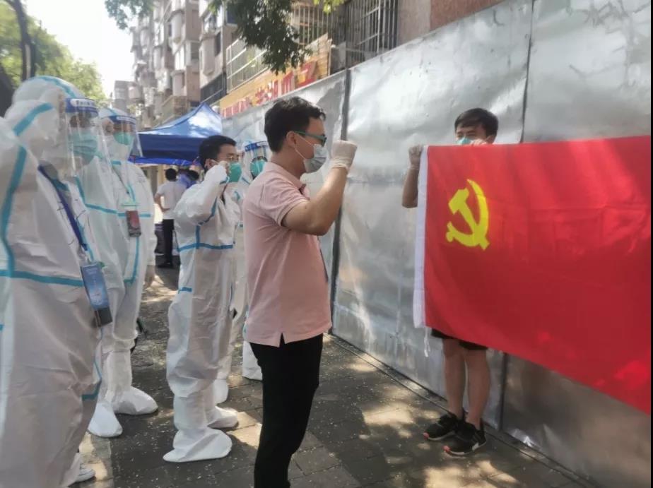 為更好地在抗疫一線發(fā)揮基層黨組織的戰(zhàn)斗力和黨員的先鋒模范作用,8月8日,第一批次出征高風(fēng)險地區(qū)——武塘社區(qū)的志愿服務(wù)先鋒部隊經(jīng)集團(tuán)黨委批準(zhǔn),率先成立了抗疫志愿服務(wù)行動臨時黨支部,讓黨旗第一時間飄揚在疫情防控第一線。