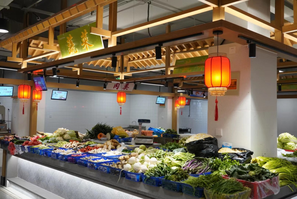 農(nóng)貿(mào)市場內(nèi)安裝了中央空調(diào)和排風(fēng)系統(tǒng),同時還配備了電子信息屏,電子觸摸屏、室內(nèi)音響等硬件設(shè)施,為商家統(tǒng)一配發(fā)電子秤,并且把銀聯(lián)卡、微信、支付寶等網(wǎng)絡(luò)支付于體,便網(wǎng)絡(luò)支付更加便捷高效,全力構(gòu)建市民身邊的放心菜場、星級菜場、智慧菜場。