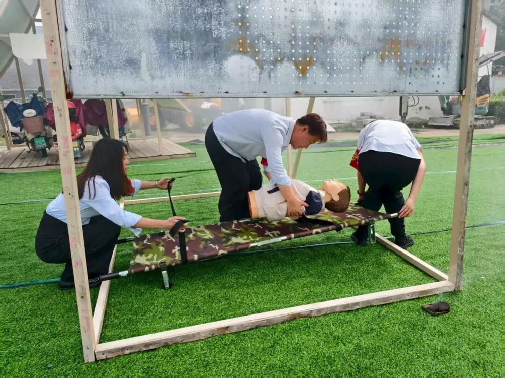 首先,組織參訓(xùn)人員進(jìn)行了消防水帶滅火實(shí)操演練,模擬場(chǎng)景為東關(guān)街謝馥春應(yīng)急避難廣場(chǎng)某處發(fā)生火情,當(dāng)班人員發(fā)現(xiàn)并大聲呼喊、報(bào)警,醫(yī)療救護(hù)組人員接到應(yīng)急預(yù)案啟動(dòng)指令后攜帶應(yīng)急救護(hù)物資,對(duì)現(xiàn)場(chǎng)受傷人員進(jìn)行了臨時(shí)救護(hù)。同時(shí),滅火組第一時(shí)間趕赴微型消防站,穿戴消防戰(zhàn)斗服,使用室外消火栓進(jìn)行滅火,演練過程中,隊(duì)員們聽從指揮、統(tǒng)一調(diào)動(dòng)、行動(dòng)迅速、各負(fù)其責(zé)、密切配合,圓滿完成了應(yīng)急滅火處置全流程。