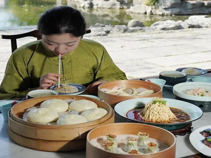 長樂客?!扒镯嵲绮柩偶敝噩F(xiàn)清代鹽商“早茶會客”的雅趣,蟹黃湯包、翡翠燒賣等淮揚名點搭配古箏琵琶演奏,讓游客在舌尖與耳畔同步感受非遺魅力。隔壁的芍藥園子書場內(nèi),評彈藝人傾情演繹《珍珠塔》《雙金錠》等經(jīng)典曲目,場場爆滿的盛況印證著傳統(tǒng)曲藝的當代生命力。長樂鹽商宴更是海納八方客,單日最高接待量突破200人次,沉浸式鹽商家宴成為美食愛好者的全新打卡地標。